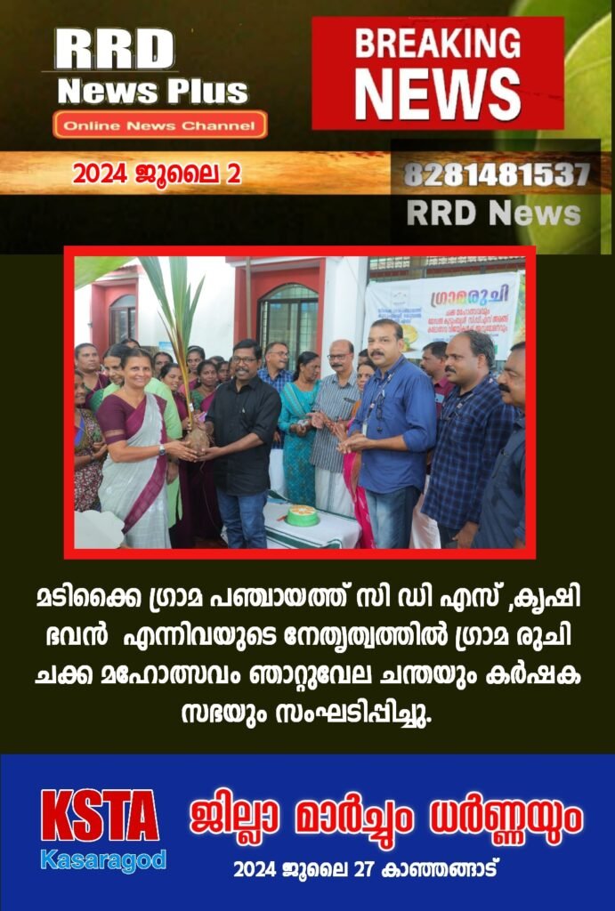 മടിക്കൈ ഗ്രാമ പഞ്ചായത്ത് സി ഡി എസ് ,കൃഷി ഭവൻ എന്നിവയുടെ നേതൃത്വത്തിൽ ഗ്രാമ രുചി ചക്ക മഹോത്സവം ഞാറ്റുവേല ചന്തയും കർഷക സഭയും സംഘടിപ്പിച്ചു.