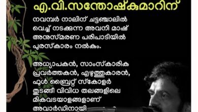 പി.അവനീന്ദ്രനാഥ് മാസ്റ്റർ സ്മാരക സംസ്ഥാന അധ്യാപക അവാർഡ് എ.വി.സന്തോഷ് കുമാറിന് വിദ്യാഭ്യാസ, സാമുഹികയിടങ്ങളിൽ വേറിട്ട പ്രവർത്തനങ്ങളാൽ ജനമനസ്സുകളിൽ ഇടം നേടിയ, ചട്ടഞ്ചാൽ ഹയർ സെക്കൻ്ററി സ്കൂൾ,മുൻ പ്രിൻസിപ്പൽ…