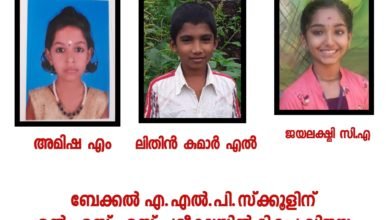 ബേക്കൽ എ.എൽ.പി.സ്ക്കൂളിന് എൽ.എസ്.എസ്.പരീക്ഷയിൽ മികച്ച വിജയം l:- ബേക്കൽ എ.എൽ.പി.സ്ക്കൂളിൽ ഇപ്രാവശ്യം മൂന്ന് കുട്ടികൾ അമിഷ.എം.(മലയാളം), ലിതിൻ കുമാർ.എൽ, ജയലക്ഷ്മി.സി.എ.(കന്നഡ) എൽ.എസ്.എസ്. പരീക്ഷയിൽ മികച്ച വിജയം കൈവരിച്ച്…