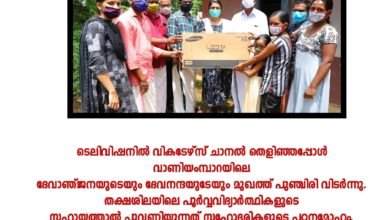 ടെലിവിഷനില് വികടേഴ്സ് ചാനല് തെളിഞ്ഞപ്പോള് വാണിയംമ്പാറയിലെ ദേവാഞ്ജനയുടെയും ദേവനന്ദയുടേയും മുഖത്ത് പുഞ്ചിരി വിടര്ന്നു. തക്ഷശിലയിലെ പൂര്വ്വവിദ്യാര്ത്ഥികളുടെ സഹായത്താല് പൂവണിയുന്നത് സഹോദരികളുടെ പഠനമോഹം. കാഞ്ഞങ്ങാട്.വാണിയംമ്പാറ ചങ്ങമ്പുഴ ക്ലബ്ബിന് സമീപം…