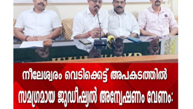 *നീലേശ്വരം വെടിക്കെട്ട് അപകടത്തിൽ സമഗ്രമായ ജുഡീഷ്യൽ അന്വേഷണം വേണം തീയ്യ ക്ഷേമ സഭ* നീലേശ്വരം വീരർകാവ് അഞ്ഞൂറ്റമ്പലത്തിലെ ഉത്സവത്തോടനുബന്ധിച്ച് നടന്ന വെടിക്കെട്ടിൽ സമഗ്രമായ ജുഡീഷ്യൽ അന്വേഷണം നടത്തണം…