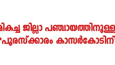 മികച്ച ജില്ലാ പഞ്ചായത്തിനുള്ള* *പുരസ്ക്കാരം കാസർകോടിന്*