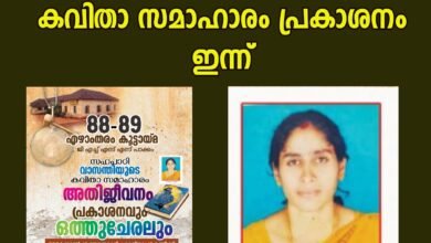 വാസന്തിയുടെ കവിതസമാഹാരം പ്രകാശനം ഇന്ന് മടിക്കൈ കക്കാട്ട് വാസന്തിയുടെ കവിത സമാഹാരം ഇന്ന് പ്രകാശനം ചെയ്യും പാക്കം ഗവൺമെന്റ് ഹയർ സെക്കൻഡറി സ്കൂളിലെ 88 89 ഏഴാം…